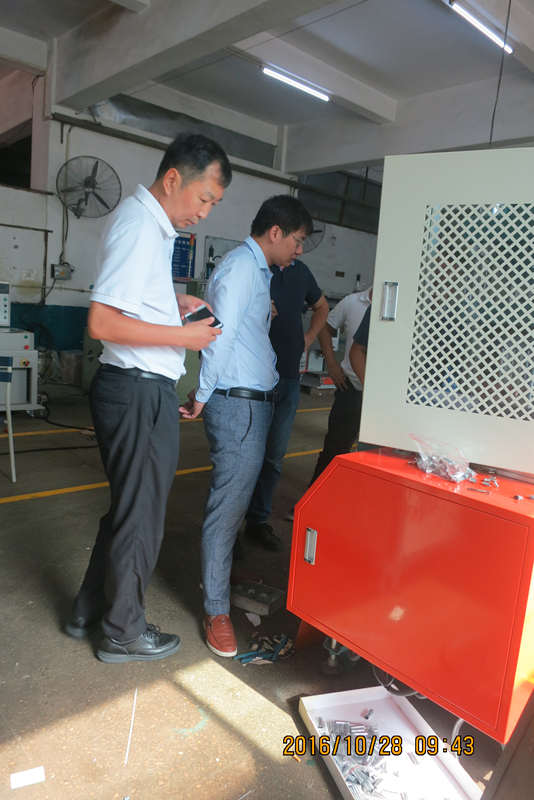 客戶考察圍觀員工測(cè)試機(jī)械設(shè)備