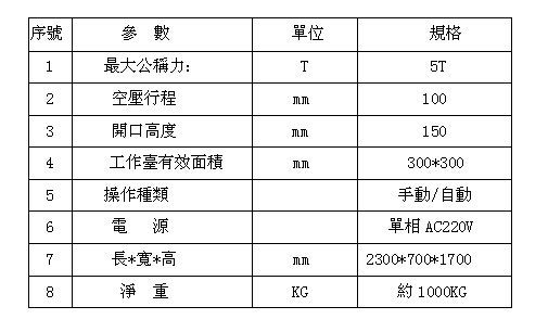 3:機械安全部分工作臺經(jīng)過真空調質處理,表面電鍍處理長期使用不變形,不生銹。裝卸模具之設計簡單,方便,快捷。操作面可加裝紅外線安全裝置。雙手同步操作,急升保護裝置。